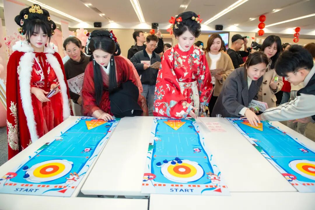 随后的国风沉浸式游园会活动现场设置了木射、蹀躞、投壶、蹴鞠、迷你冰壶、茶艺、飞花令、AI拍照等多个传统文化体验区,丰富多彩的活动项目,让女职工们在互动和欢笑中感受到集团的关怀与文化温度。