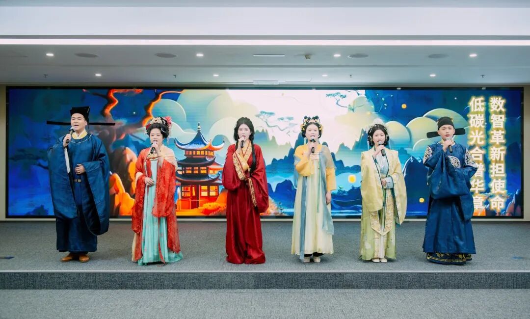 “霓裳鉴德·光合共美”国风服饰秀活动以福能期货四位青年职工自主原创AI主题视频开场。在悠扬古乐中,来自集团本部和在榕权属企业的10位“花神”率先亮相,她们分别象征着集团企业精神的芬芳绽放。10支队伍身着典雅国风服饰款款登场,将诗词朗诵、古今对话、传统乐器演奏、古风舞蹈等精彩表演融入走秀,衣袂翩跹间,将集团“光合文化”与国风底蕴、人文艺术深度交融,生动演绎了新时代女性的坚韧与柔美、智慧与担当、创新与坚守。