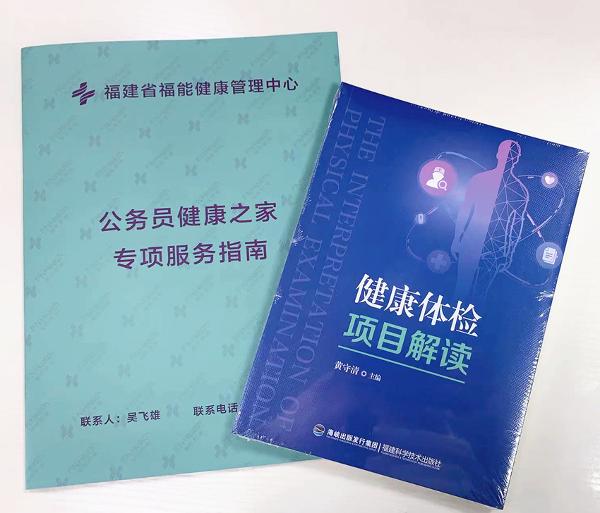 本体检中心为所有来检的公务员赠送由总经理黄守清主编的《健康体检项目解读》1本。本书以人体的八大系统为总纲,详细阐述了目前在各大体检中心常用的健康体检项目,从检查项目的意义、适用范围、关联项目、注意事项等方面进行介绍,是体检项目选择的实用指南。